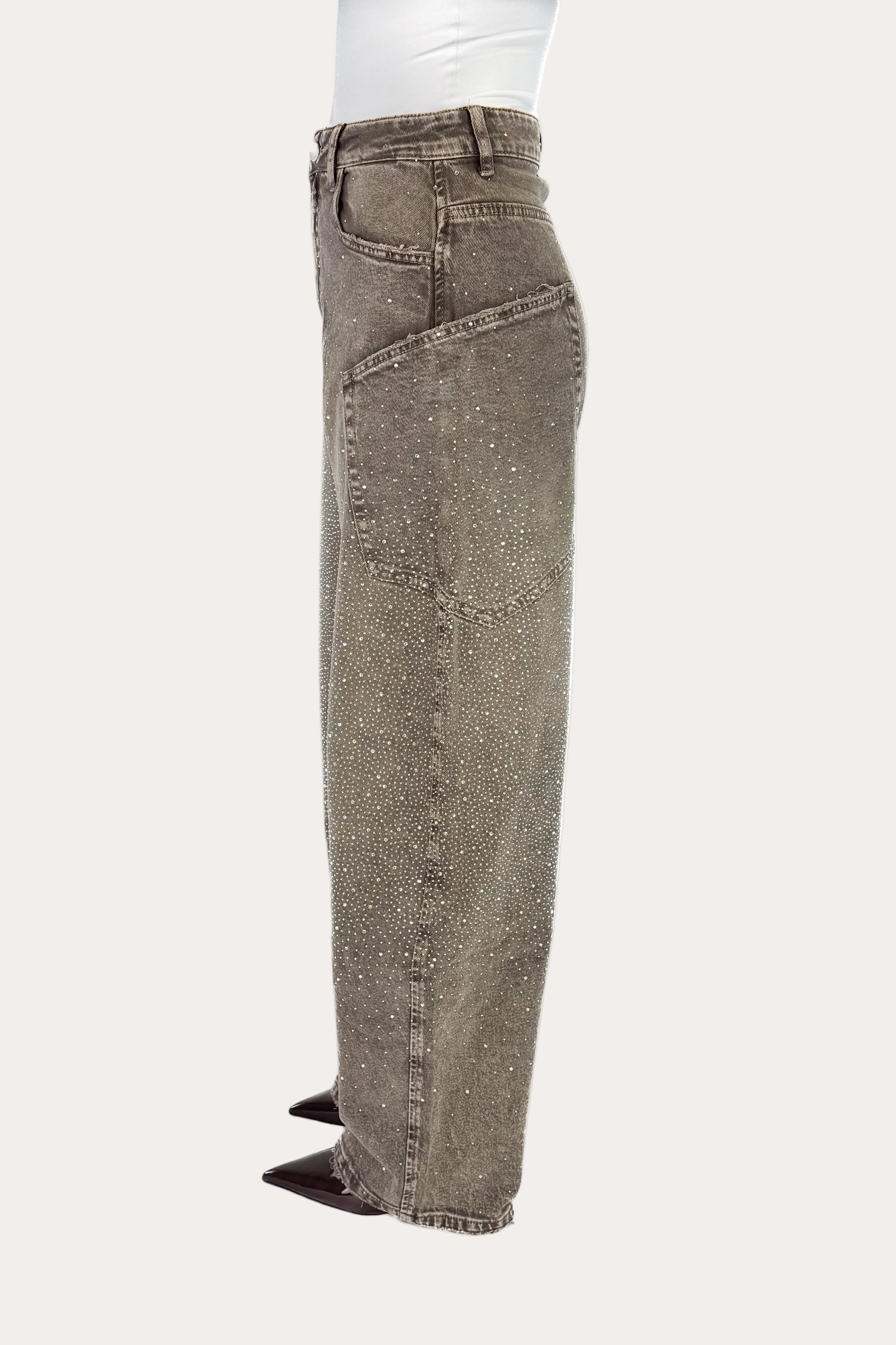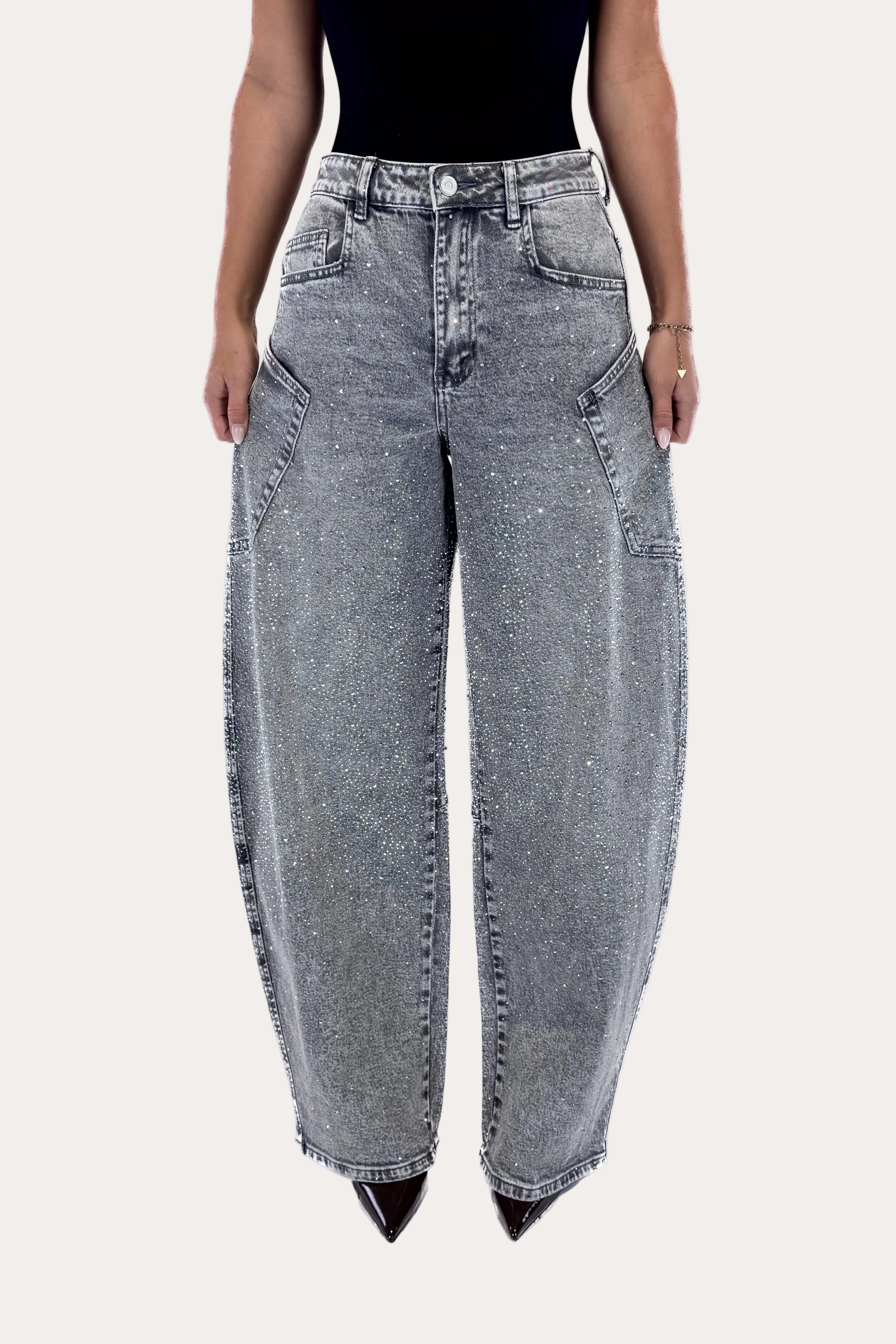 Glitter Sage Balloon Jeans - Grey