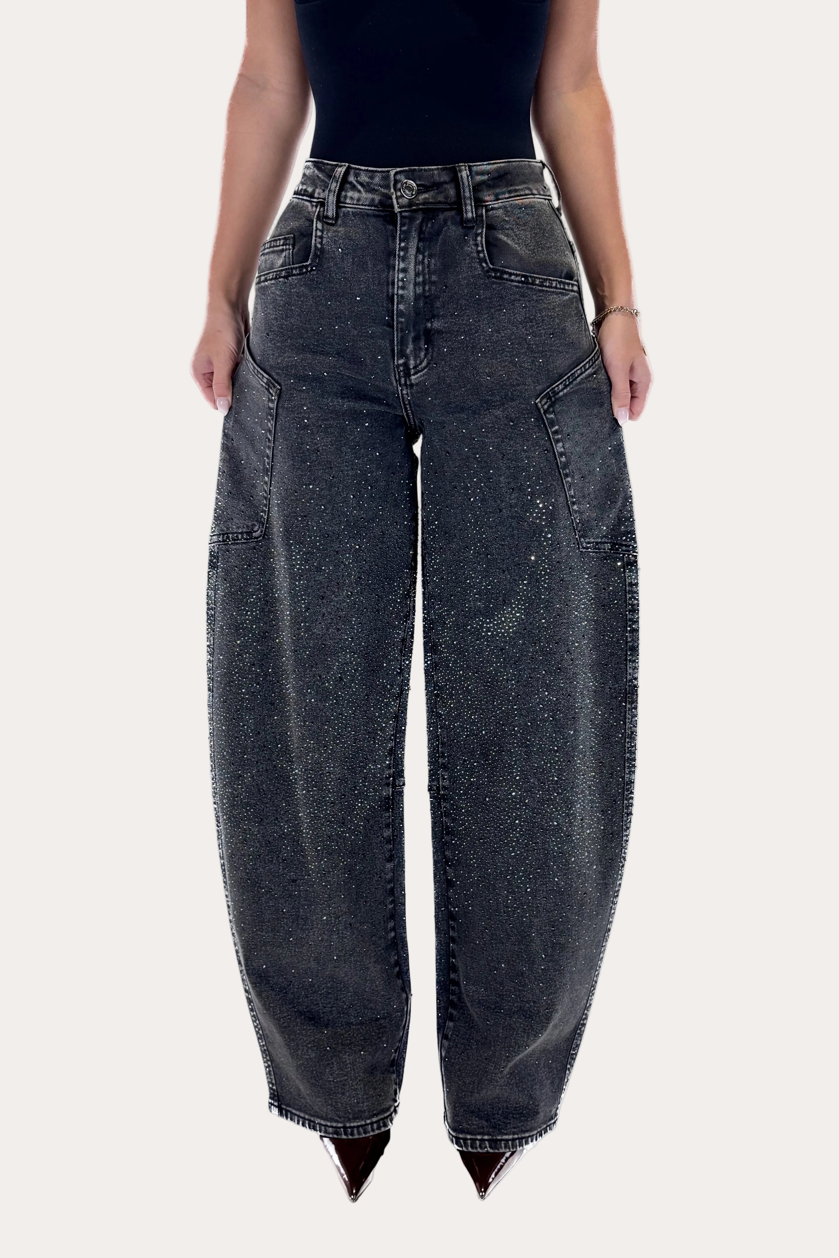 Iconic Glitter Balloon Jeans – Black