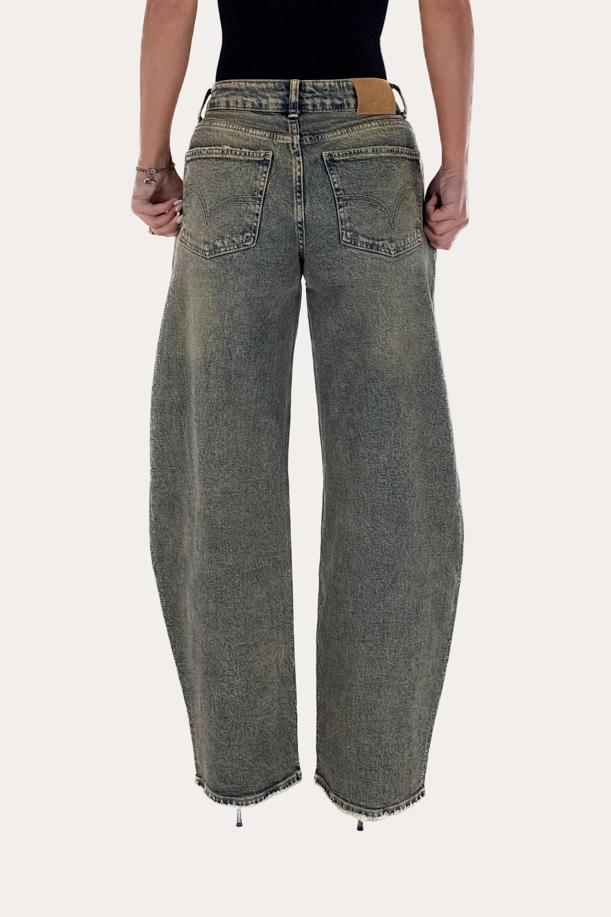 Glitter Sage Balloon Jeans - Vintage Washed